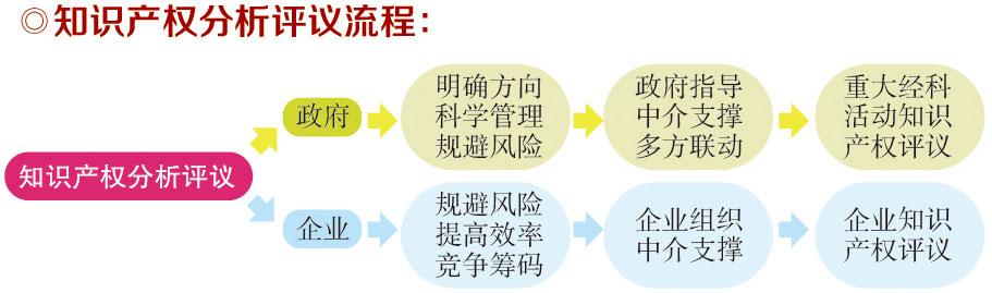 知識產(chǎn)權(quán)分析評議定義:主要是指綜合運(yùn)用情報分析手段,對重大經(jīng)濟(jì)科技活動所涉及的知識產(chǎn)權(quán)競爭狀況進(jìn)行評估、評價和審查,針對潛在問題提出解決建議,依據(jù)技術(shù)趨勢分析預(yù)測創(chuàng)新方向,以便為政府決策和企業(yè)參與市場競爭提供咨詢參考,避免經(jīng)濟(jì)科技活動因知識產(chǎn)權(quán)導(dǎo)致重大損失。